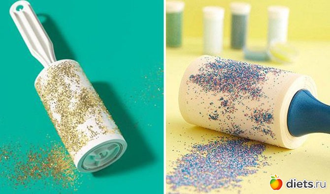 8. Липкий валик незаменим в рукоделии! Случайно рассыпанные блёстки, бисер, ошмётки ткани и ниток убираются вмиг при помощи этого предмета.
