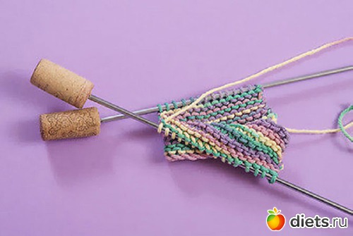 11. Прикрепив к кончикам спиц винные пробки, вы защитите петельки — ни одна не распустится!