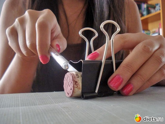 13. С помощью канцелярского зажима можно фиксировать вещь, неудобную для разрезания.