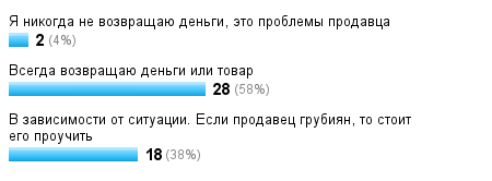 1. Верну деньги или товар в любом случае, нравится мне продавец или нет, грубил он мне или нет, это не важно.