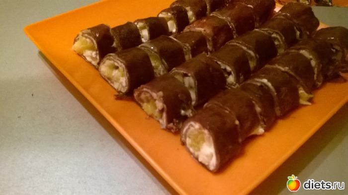 Роллы-очень вкусное, но калорийное блюдо, особенно шоколадные. Я решила поэкспериментировать и превратить их в диетические. Получилось очень вкусно!!!))) Спешу поделиться!!!