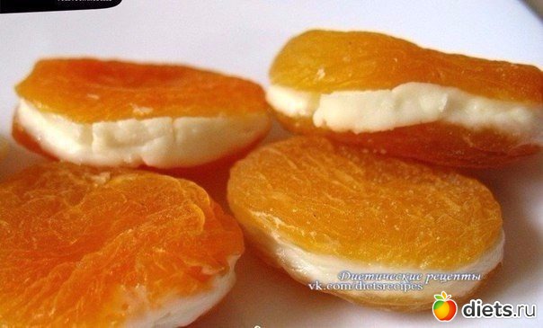 1. Полезная замена конфетам: курага с творожной начинкой