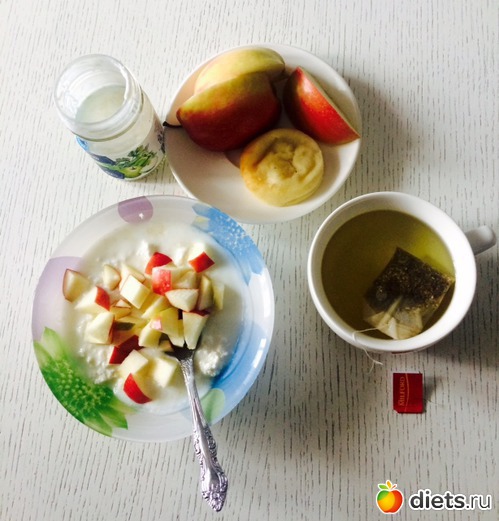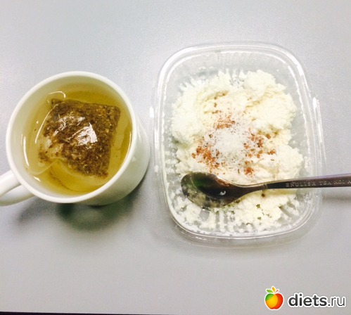 Ланч: творог с яблоком и вегуртом (что-то новенькое в магазине. Взяла на пробу. Неплохо. Йогурт на кефирных грибках), сырник, ромашковый чай