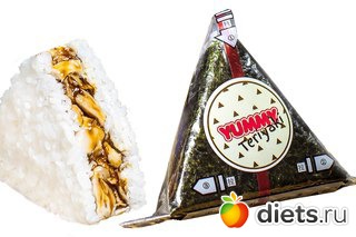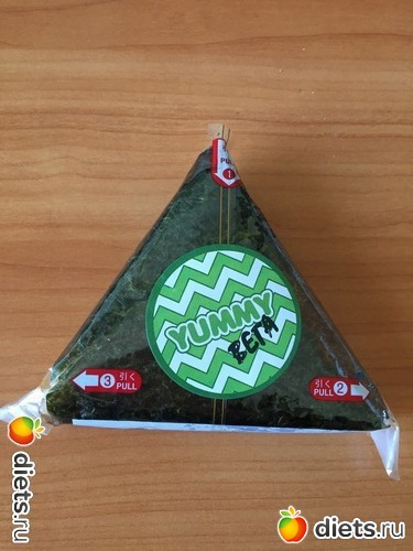 Ямми - 120-граммовый ролл треугольной формы...) но не могла его попробовать, потому что начинка там или мясо, или рыба...) а вчера наткнулась на такой вегетарианский...)) моя мечта сбылась...))))
