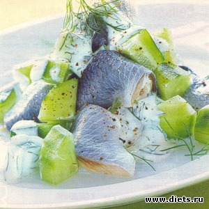 Сельдь в сочетании с насыщенным водой длинноплодным огурцом идеальны, чтобы привести в равновесие нарушенный баланс воды и минеральных веществ.