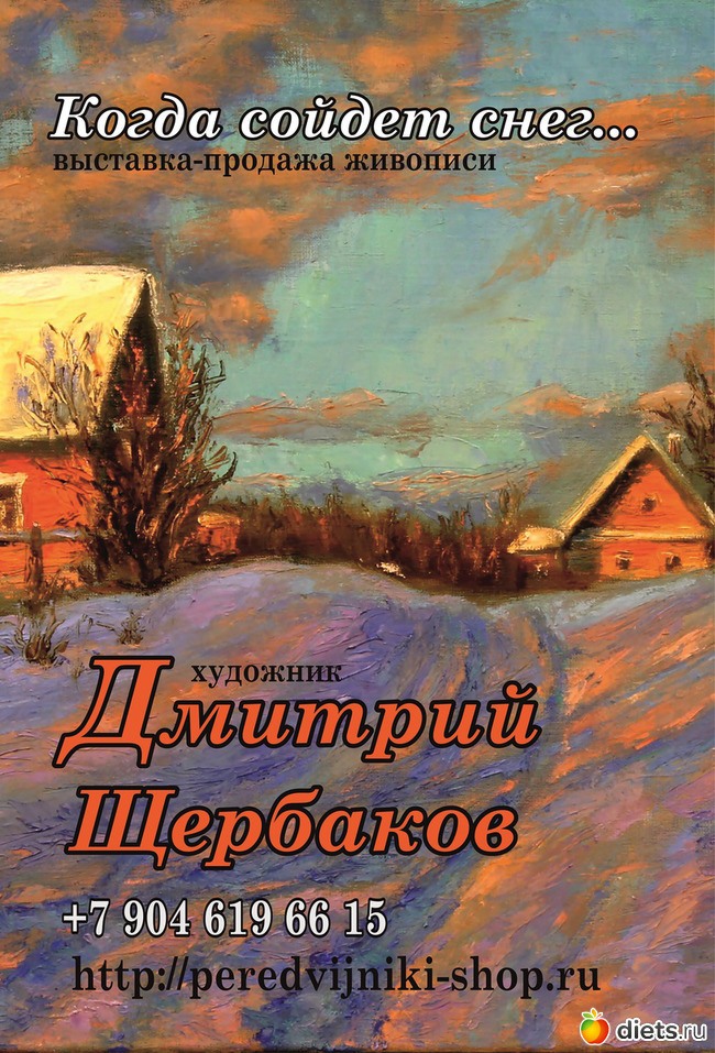 Дмитрий Щербаков с увлечением пишет пейзажи, которые охотно приобретаются частными коллекционерами разных стран. Пейзажи - это излюбленная тема творчества художника. В живописи Дмитрия Щербакова много ярких моментов, когда природа на мгновение застыла в ярком великолепии, а через секунду все изменится, уйдет свет, растворяться тени, но мы, зрители, увидели уходящее мгновение с помощью мастерства художника и его творческой энергии.