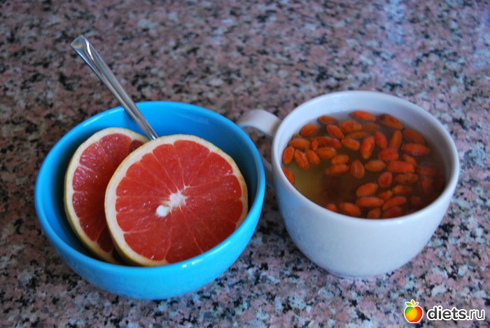 Завтрак:компот из годжи, грейпфрут
