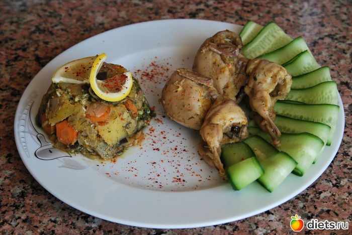 О/У Перепела, овощное рагу(морковь, тыква, баклажан, лук, брокколи)
