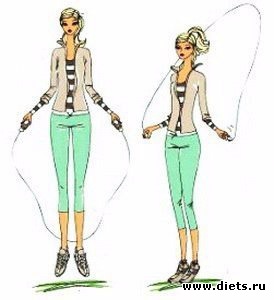 На каждый оборот скакалки сделать два прыжка. Это упражнение выполняется медленно, во время таких прыжков можно восстановить дыхание.