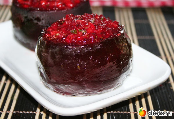При этих условиях моя свёкла осталась всё равно полусырой, поэтому во второй попытке я просто отварила свёклу почти до самой готовности и так же запекла её в духовке 20 минут. Всё получилось вкусно.
