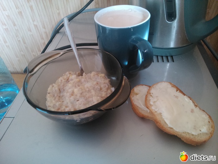 Завтрак - каша "5 злаков", 2 бутерброда с сыром, чай с молоком...
