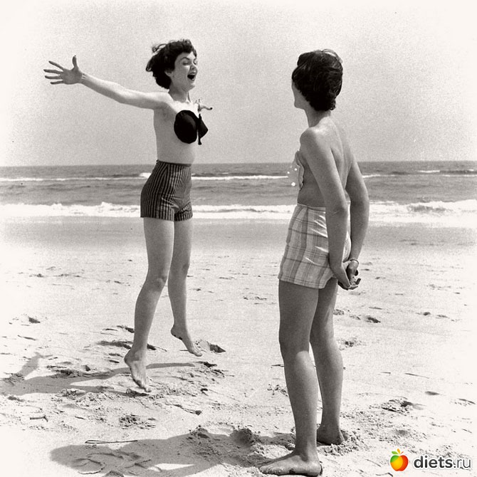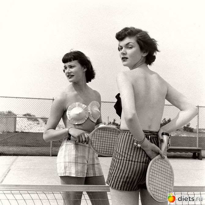 В 1949 году на страницах журнала «Life» рекламная фотосессия моделей, которые щеголяли по пляжу в… чашечках. Девушки наклонялись, прыгали и играли в теннис, словом, всякими способами демонстрировали, что изделие прочно держится на теле и не норовит слететь в самый неподходящий момент.
