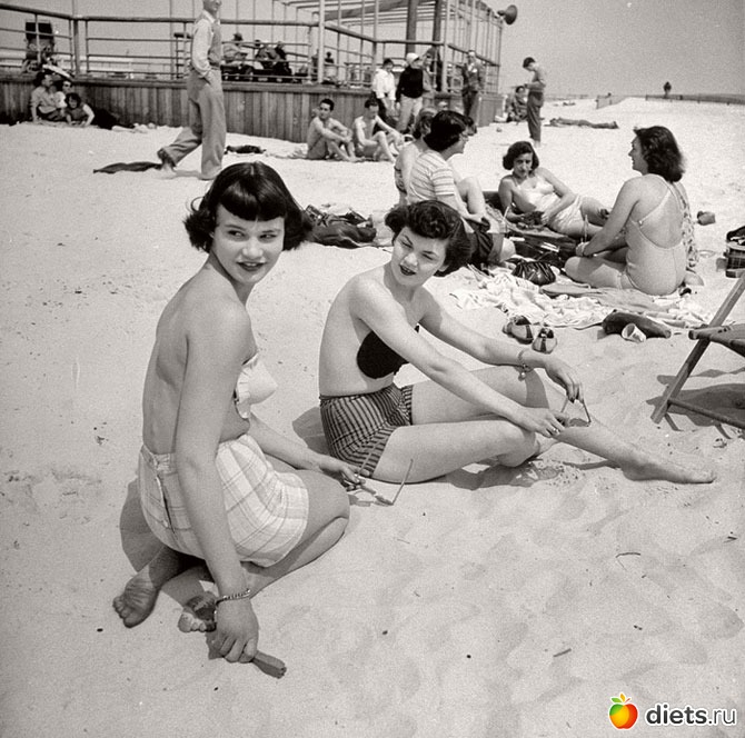 Модели в клейких бюстгальтерах, Джонс-Бич, Нью-Йорк