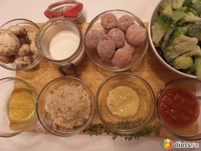 Такие рецепты рождаются спонтанно: решили морозильную камеру проинспектировать, или срочно нужно «пристроить» сливки, пока не скисли. Или шампиньоны темнеть начали. А в результате очень вкусное и нежное блюдо получается. Итак, предположим, что уже давно в морозильнике лежит полпачки брокколи, с десяток тефтелек. А нужно приготовить что-то быстрое, несложное и легкое. Такие запеканки – отличный выход. И сэкономили, и продукты сберегли, и родных вкусно накормили. Есть повод собой гордиться.