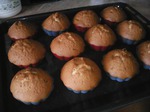 Сначала перемешиваю фруктовое пюре с сахаром (или 2 маленькие банки или одна большая), потом добавляю яйца, перемешиваю, затем мука, сода, соль, в конце масло, при желании можно в тесто добавить изюм (можно без него) получается достаточно густое тесто, но оно с ложки стекает. Включаю греться духовку, и начинаю выкладывать тесто в формочки почти до краев, при желании можно посыпать орешками, и уже в разогретую духовку ставлю выпекаться, по времени у меня получается 30-35 мин. при 200 градусах.