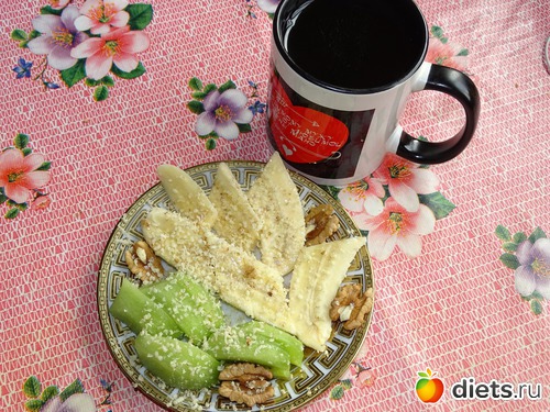 - Банан+киви, посыпанные грецкими орехами+сами грецкие орешки