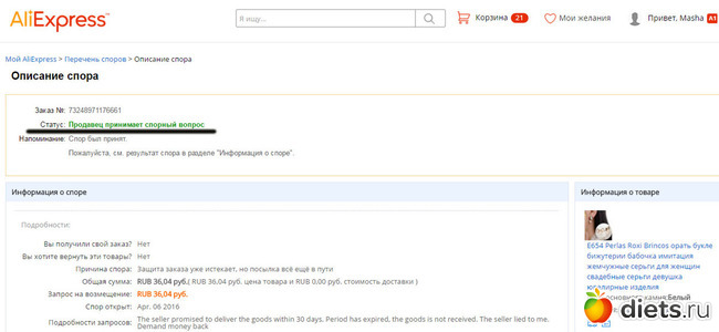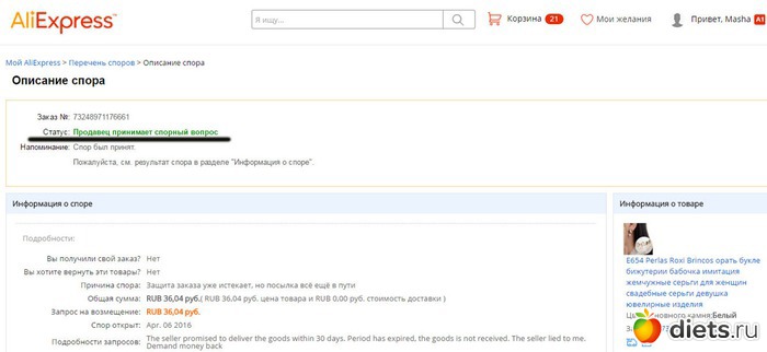 Только продавец может не согласовать спор, если видит,что посылка уже на территории РФ