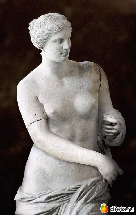 Пропорции Венеры долгие годы считались идеалом: рост – 164 см, бедра – 93 см, талия – 69 см, плечи – 86 см.
