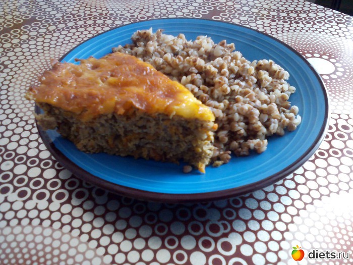 Обед - также как и вчера мясное суфле под сыром + гречка