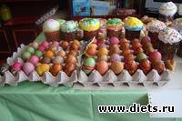 У меня обычно мама красит яйца и на мою семью. Я только пасху делаю (вернее делала пока дочь с нами жила) и кекс с изюмом вместо кулича. Возможно, в этот год решусь на кулич настоящий.
