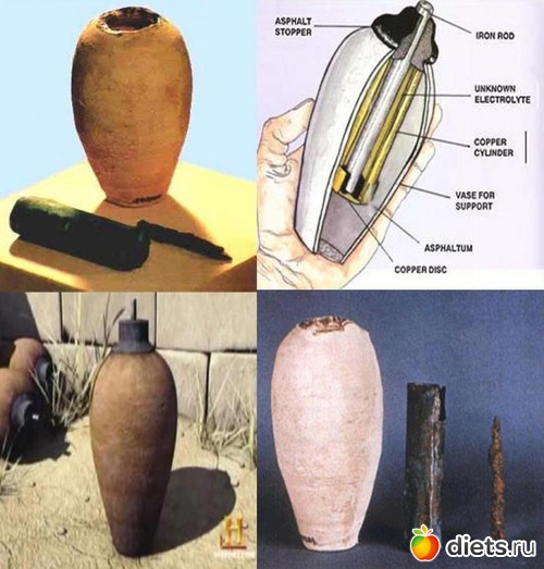 До открытия электричества первыми фору дали месопотамцы. В 30-х годах XX века на археологических раскопках под Багдадом был обнаружен загадочный артефакт, получивший название «Багдадская батарейка». Он имел следующий вид: 13-сантиметровый сосуд, через горлышко которого был проведен железный прут со следами коррозии. Внутри сосуда находился медный цилиндр, а внутри цилиндра — железный стержень.