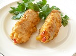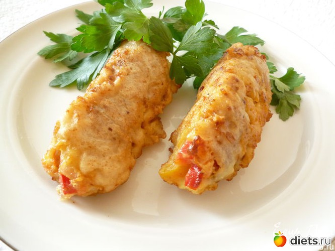В отдельной посуде взбить венчиком яйца с солью и молотым перцем. Нагреваем сковороду с растительным маслом (жарить будем на небольшом огне, поэтому и сковороду нагревайте на таком же огне). Берем по одному рулетику, хорошо со всех сторон обмакиваем в яичную смесь, выкладываем сначала швом вниз и обжариваем в течении 15-20 минут до золотистого цвета.