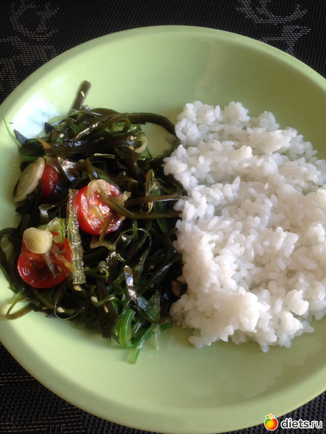 сегодня крахмалы! На завтрак киви и банан с корицей+ кофе! На обед рисик и морская капуста+ чука которая тоже морская капуста и помидорки Черри