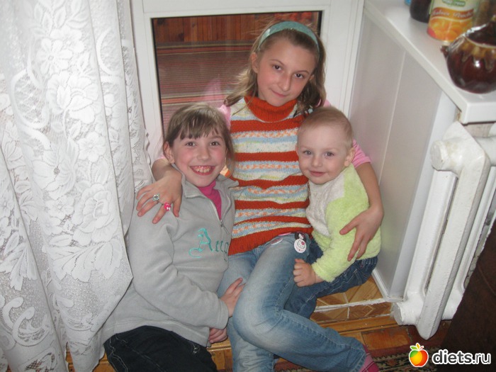 Моя доча (в центре) с троюродными братом и сестрой