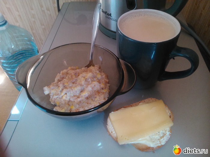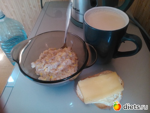 Завтрак - каша "5 злаков", 1 бутерброд с сыром, чай...