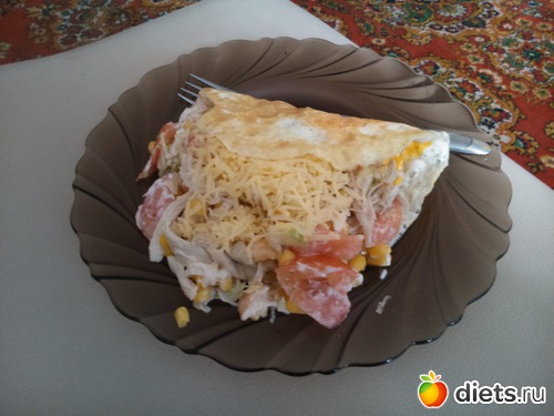 Обед - были мысли съесть что-нибудь из фасфуда, но я справилась и сварганила салат - немного вареной грудки, половина помидора, немного зеленого яблока, кукуруза, натуральный йогурт, немного сыра, яйцо поджаренное без масла...