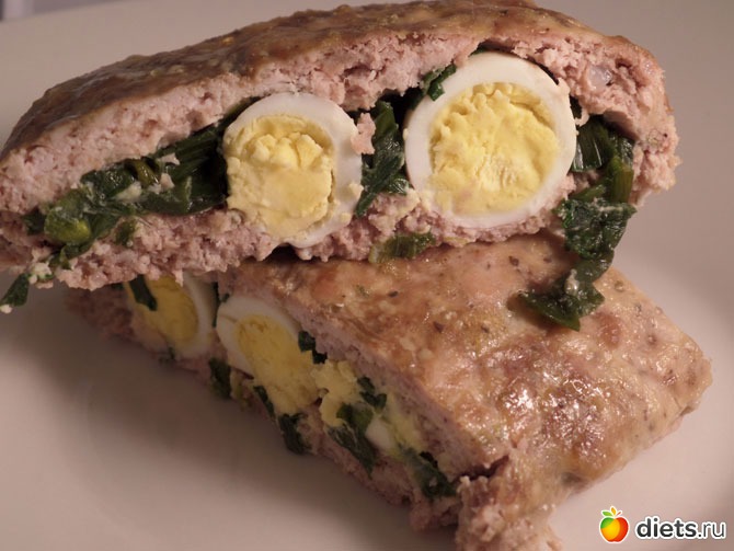 В середине весны зелень хочется есть в любом виде – настолько организм требует витаминов и микроэлементов. И зелёный лук кажется особенно вкусным! Классическое сочетание лука и яиц предлагаю использовать при готовке мясного рулета. Самое сложное в нём – это очистить перепелиные яйца от скорлупы.