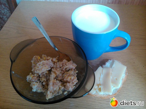 Завтрак - каша "5 злаков", бутерброд с сыром, чай...