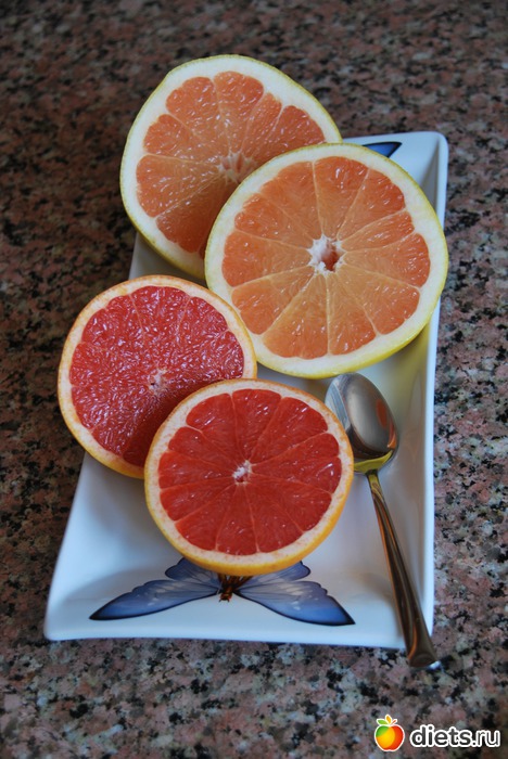 Завтрак: 2 грейпфрута, один съела так а из второго сок отжала
