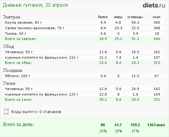 Калорийность продуктов