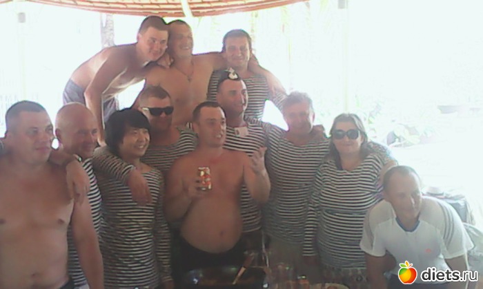 Меня посвящали в моряки, для этого надо было выпить соленой воды, произнести определенные слова и потом можно по праву носить тельняшку...хороших фоток пока нет, они мне обещали потом на почту скинуть...