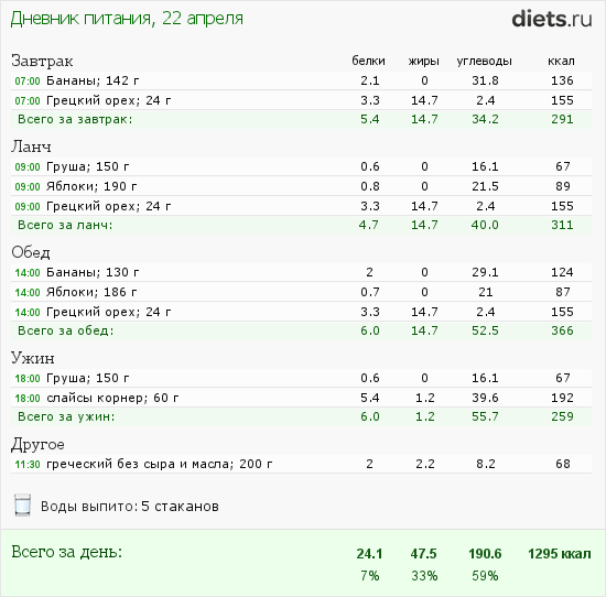 За вчерашний углеводный день +300, сегодня фруктовый день, вот такое меню получилось:
