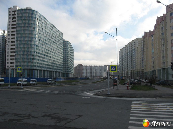 Это ул. Маршала Захарова. Справа стоят жилые кварталы, слева - канал и Южно-Приморский парк.