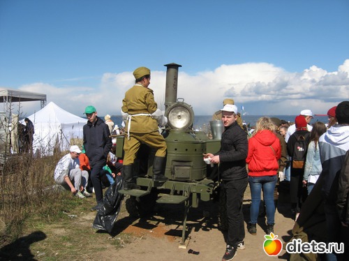 Сегодня был субботник, старшеклассники убирали берег, а их кормили солдатской гречневой кашей. пахлоооооо! ням-ням!