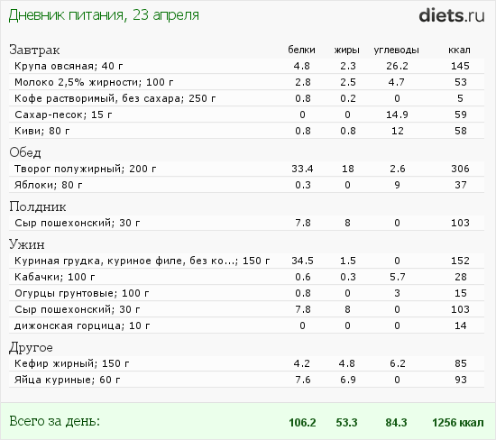 Я бы точно половину продуктов убрала и добавила более полезных, и разбила приёмы.