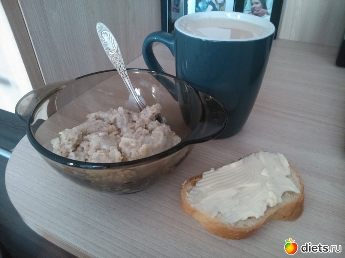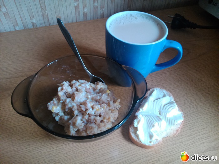 Завтрак - чай с молоком, каша "5 злаков", бутерброд с сыром..