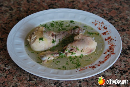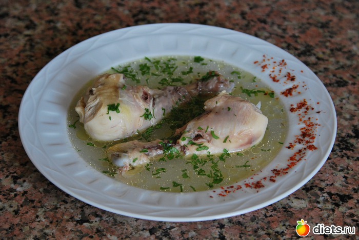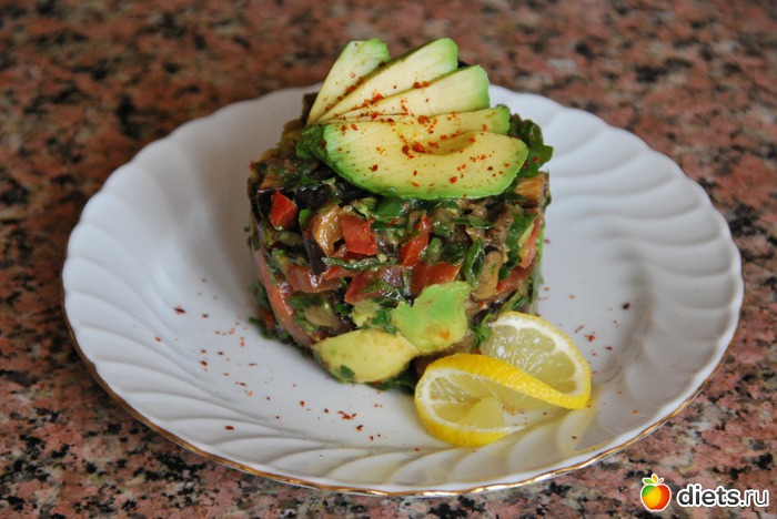 Обед:Салат из баклажан с авокадо, отварная курица с бульоном