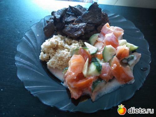 Обед - обжаренная печень без масла, салат, пшеничная каша...