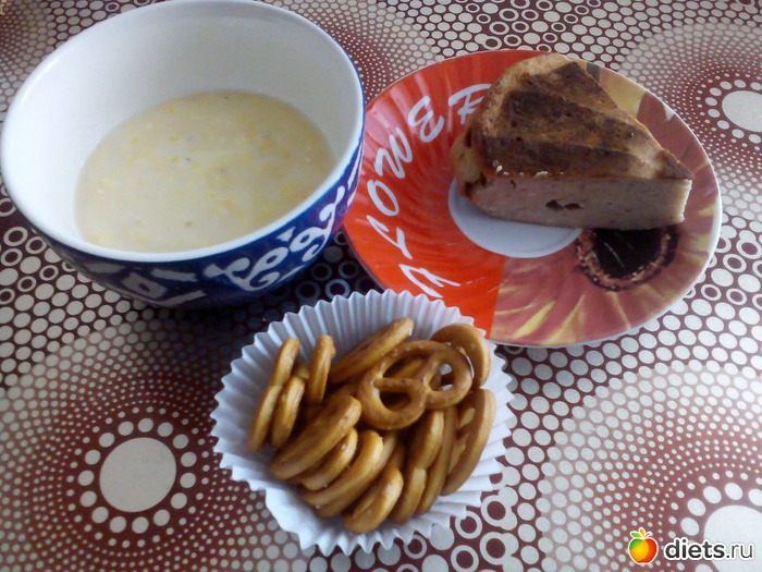 ) + крендельки 10г + банановый чизкейк 70г + цикорий с молоком