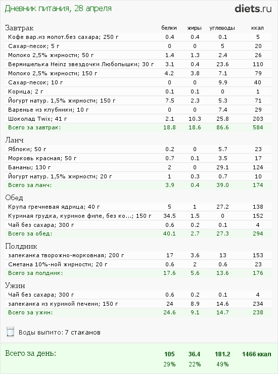 Завтрак 1 в 8-30 : Кофе- 254гр. с молоком - 65 гр.и овсяное печенье "5 злаков"- 66 гр