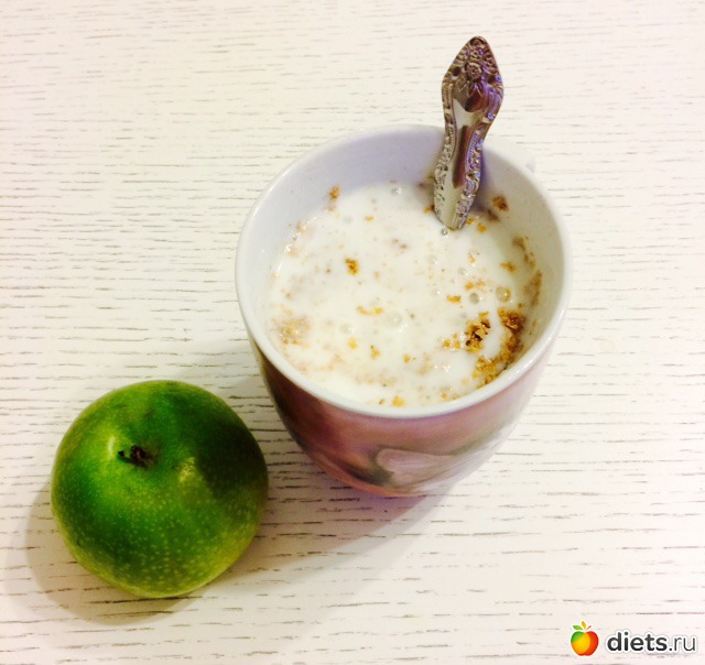 Ужин: кефир обезжиренный с клетчаткой и специями (имбирь, корица), яблоко