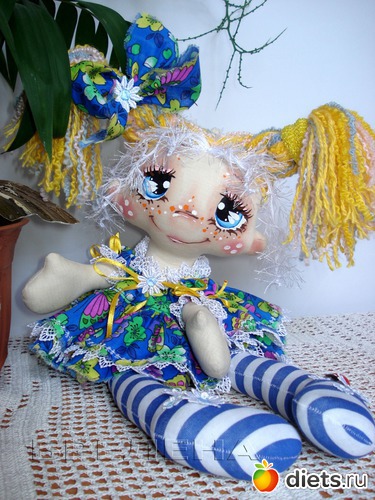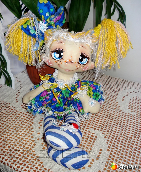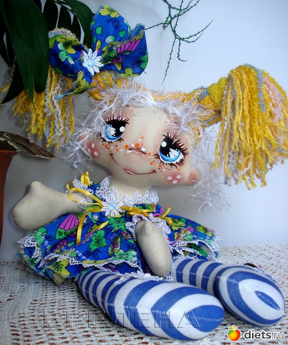 Текстильная кукла Катюшка - это пожелание Счастья и Радости. Удачи и Успеха, Добра и Здоровья. Текстильная кукла сшита из фабрично окрашенной хб ткани и отечественного трикотажного полотна. Лицо куклы нарисовано акриловыми красками для ткани. Кукла самостоятельно не стоит. В волосах куклы имеется петелька для крепления на стене. Кукла для активной игры не предназначена! Все доп.вопросы в личной переписке.