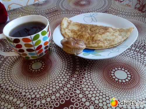 Завтрак - овсяноблин с сырной начинкой 160г + творожно-банановый ПП маффин + чай