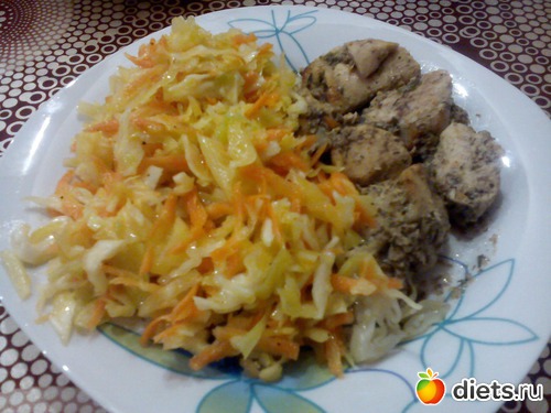 Ужин - тушеная курица + овощной салат. Всего: 250г
