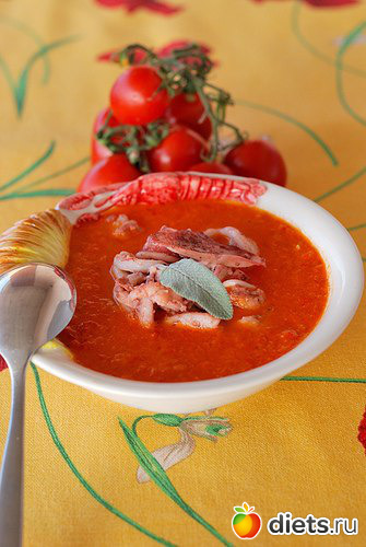 4. Добавить помидоры. Залить овощным все овощи бульоном и варить минут 10. Выключить, измельчить овощи блендером.