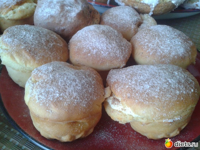 В общем, это типа булочки с начинкой: творог, повидло, ягоды...